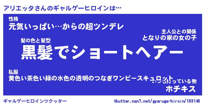 | ファンタジー風あだ名 | 『アリフェル』『エターナルアリエッター』 |