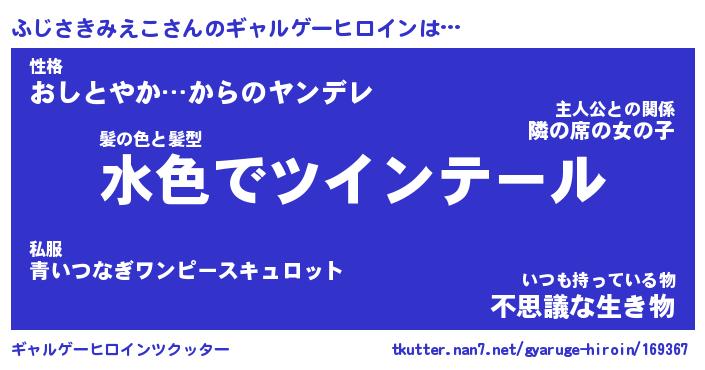 | 女子向けラノベタイトル風あだ名 | 『(仮)ふじさきみえこのやんごとなき事情』 |
