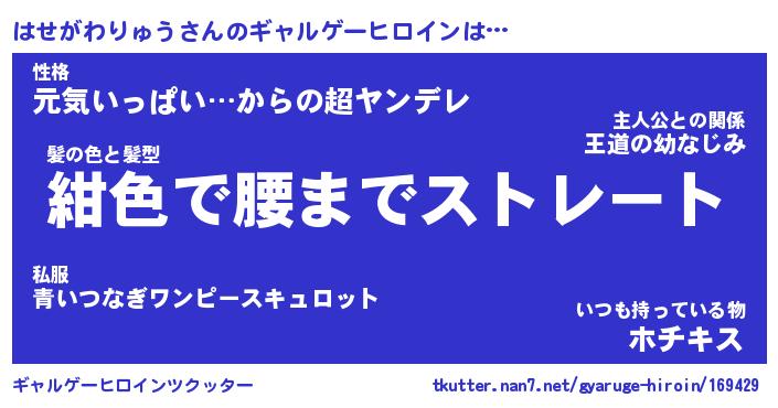 | 女子向けラノベタイトル風あだ名 | 『誰かこのはせがわりゅうを説明してください! ~契約から始まるウェディング~』 |