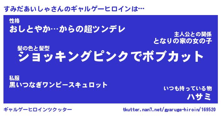 | 女子向けラノベタイトル風あだ名 | 『(仮)すみだあいしゃのやんごとなき事情』 |