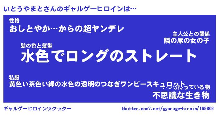 | 女子向けラノベタイトル風あだ名 | 『(仮)いとうやまとのやんごとなき事情』 |