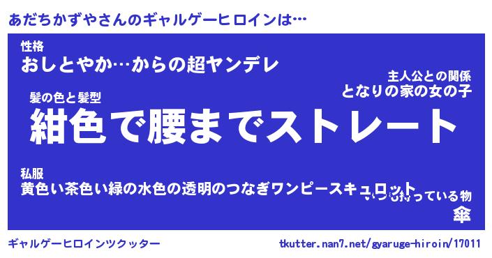 | 女子向けラノベタイトル風あだ名 | 『誰かこのあだちかずやを説明してください! ~契約から始まるウェディング~』 |