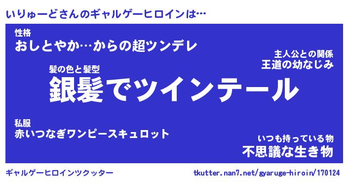 | 男性向けラノベタイトル風あだ名 | 『いりゅーどの憂鬱』 |