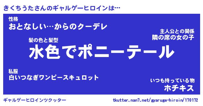 | 女子向けラノベタイトル風あだ名 | 『(仮)きくちうたのやんごとなき事情』 |