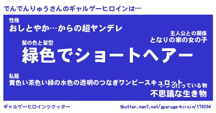 | 男性向けラノベタイトル風あだ名 | 『デンデンリュウアートオンライン』 |