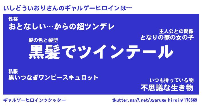 | 男性向けラノベタイトル風あだ名 | 『いしどういおりの憂鬱』 |