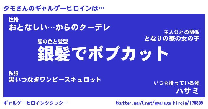 | 女子向けラノベタイトル風あだ名 | 『ダモ姫と円卓の騎士』『ダモ伯爵の花嫁』 |