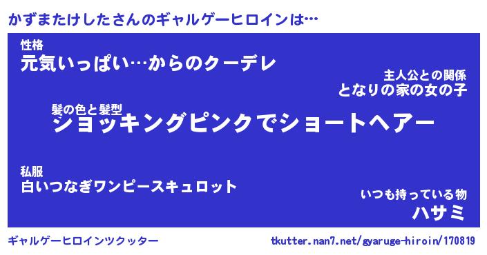 | 男性向けラノベタイトル風あだ名 | 『かずまたけしたの憂鬱』 |