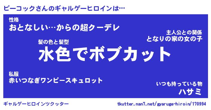 | ファンタジー風あだ名 | 『ピーフェル』『エターナルピーコックー』 |
