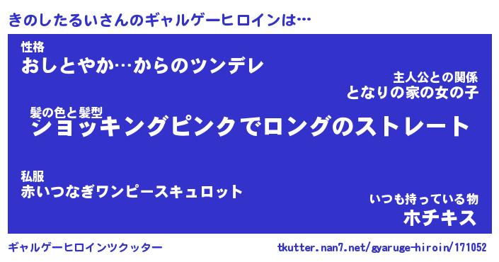 | 女子向けラノベタイトル風あだ名 | 『(仮)きのしたるいのやんごとなき事情』 |