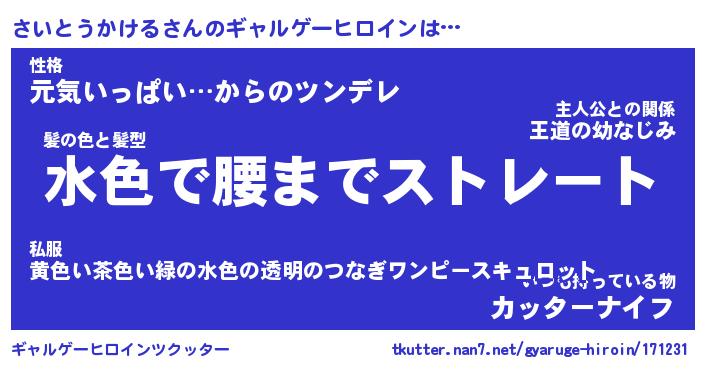 | 男性向けラノベタイトル風あだ名 | 『さいとうかけるの憂鬱』 |