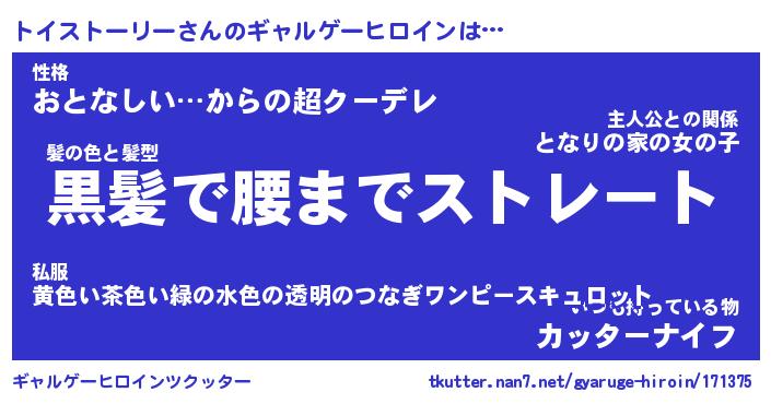 | 女子向けラノベタイトル風あだ名 | 『(仮)トイストーリーのやんごとなき事情』 |