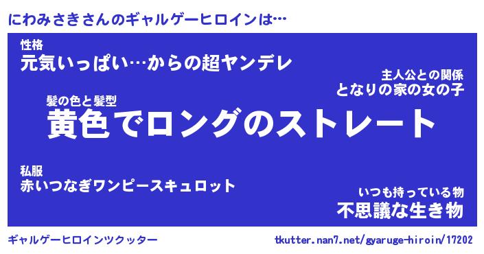| ファンタジー風あだ名 | 『ニワフェル』『エターナルニワミサキー』 |