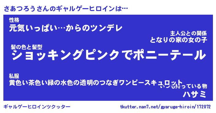 | 男性向けラノベタイトル風あだ名 | 『さあつろうの憂鬱』 |