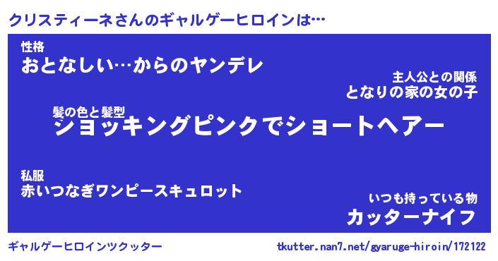 | 女子向けラノベタイトル風あだ名 | 『(仮)クリスティーネのやんごとなき事情』 |