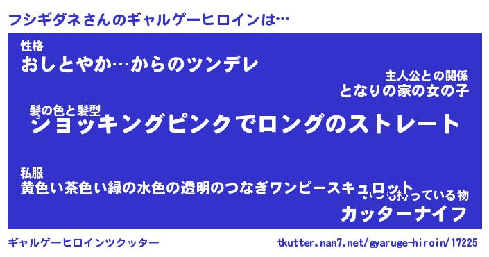 | ファンタジー風あだ名 | 『フシフェル』『エターナルフシギダネー』 |