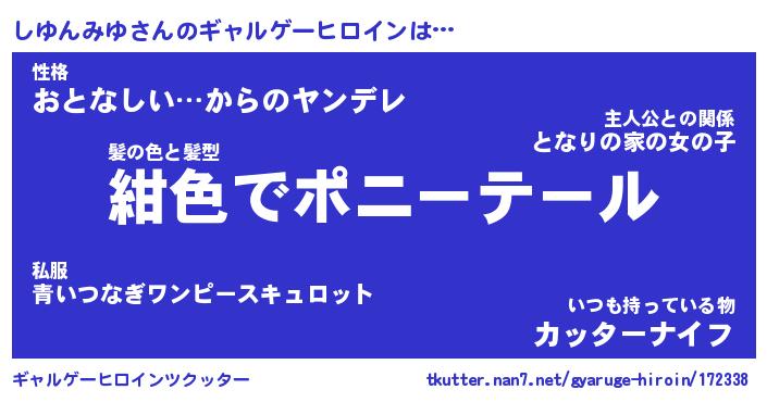 | ファンタジー風あだ名 | 『シユフェル』『エターナルシユンミユー』 |