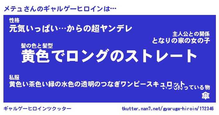 | ポケモン風あだ名 | 『メテチュウ』『メテュダネ』 |