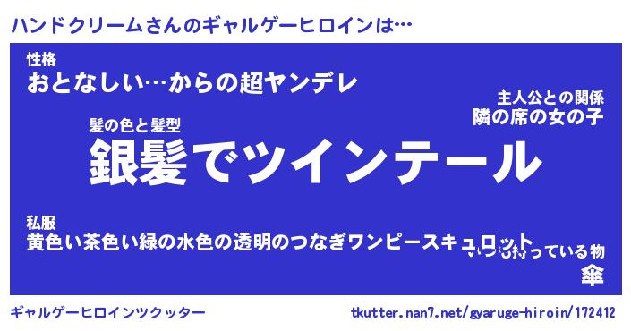 | 女子向けラノベタイトル風あだ名 | 『ハンドクリーム姫と円卓の騎士』 |