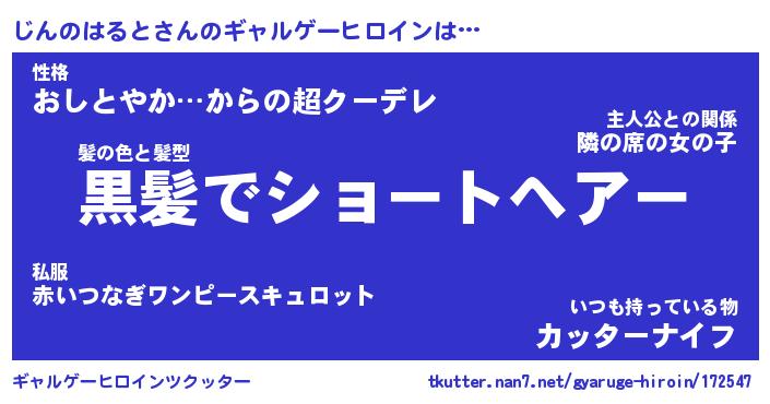 | 男性向けラノベタイトル風あだ名 | 『じんのはるとの憂鬱』 |