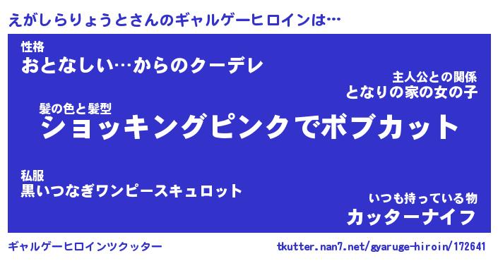 | 女子向けラノベタイトル風あだ名 | 『(仮)えがしらりょうとのやんごとなき事情』 |