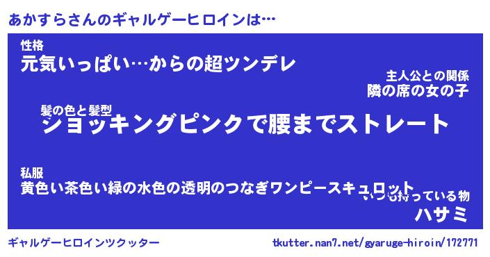 | 意味不明あだ名 | 『ペロリンあかすら』『永久保存あかすら』 |