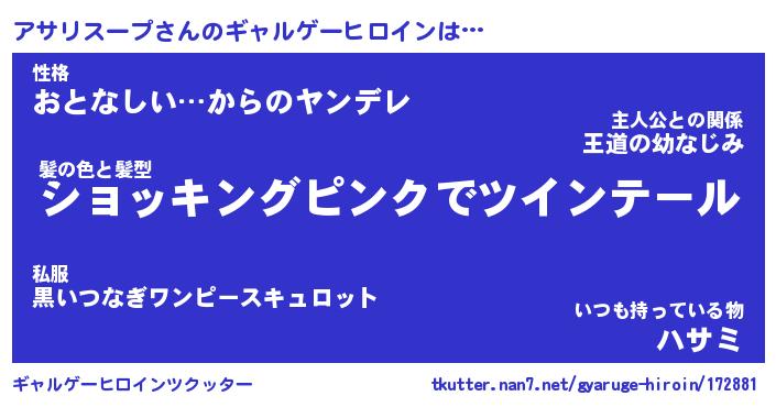 | ヘコむあだ名 | 『アサっふぃ~』『つくし』 |