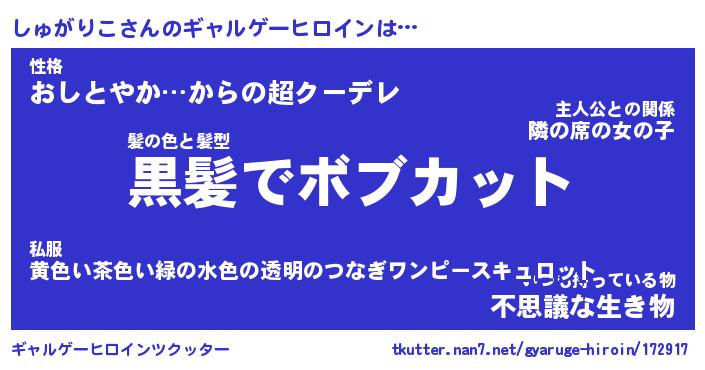 | ヘコむあだ名 | 『しゅふぇ~』『つくし』『しゅっ子』 |