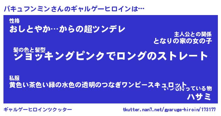 | 男性向けラノベタイトル風あだ名 | 『バキュフンミンの憂鬱』 |