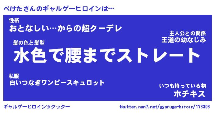 | 女子向けラノベタイトル風あだ名 | 『(仮)ぺけたのやんごとなき事情』 |