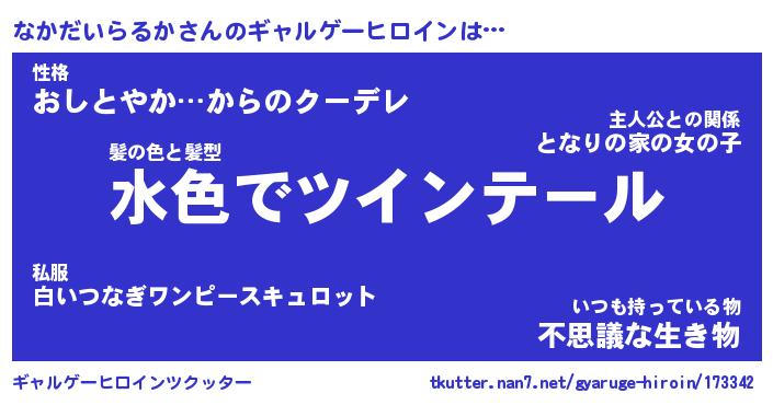 | 女子向けラノベタイトル風あだ名 | 『(仮)なかだいらるかのやんごとなき事情』 |
