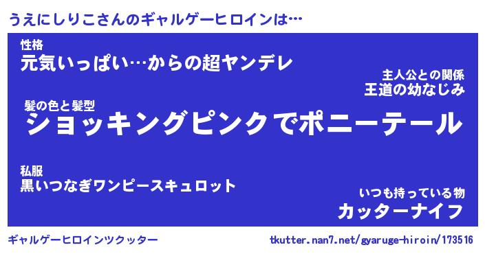 | ヒーロー風カッコイイあだ名 | 『スーパーウエニシリコ』『暗黒騎士ウエ』 |