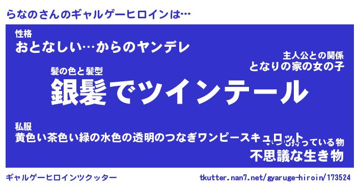 | 女子向けラノベタイトル風あだ名 | 『らなの姫と円卓の騎士』『らなの恋絵巻』 |