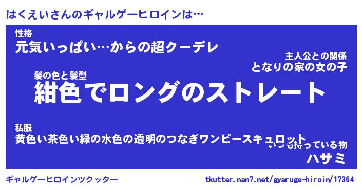 | ファンタジー風あだ名 | 『ハクフェル』『エターナルハクエイー』 |