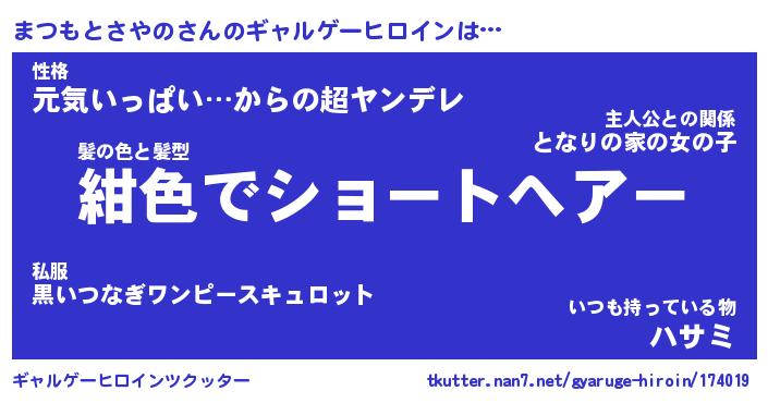 | 男性向けラノベタイトル風あだ名 | 『マツモトサヤノアートオンライン』 |