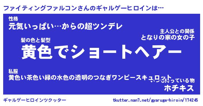 | 女子向けラノベタイトル風あだ名 | 『誰かこのファイティングファルコンを説明してください! ~契約から始まるウェディング~』 |