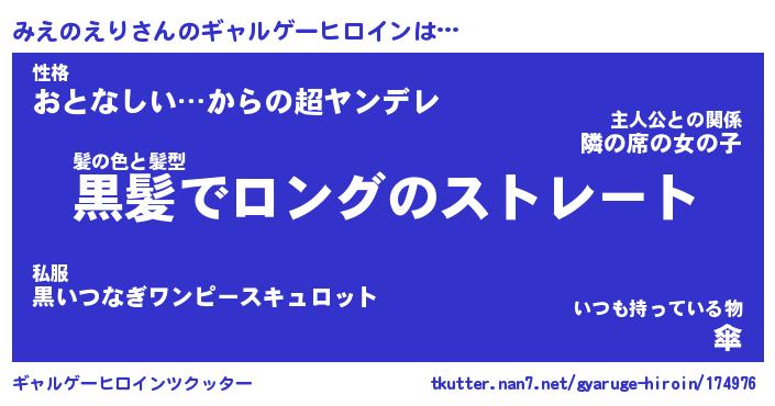 | ファンタジー風あだ名 | 『ミエフェル』『エターナルミエノエリー』 |