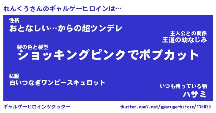 | 男性向けラノベタイトル風あだ名 | 『れんくうの憂鬱』 |