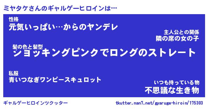 | ヒーロー風カッコイイあだ名 | 『スーパーミヤタケ』『幻影騎士ミヤ』 |