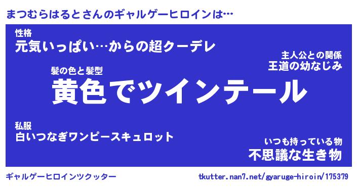 | 女子向けラノベタイトル風あだ名 | 『誰かこのまつむらはるとを説明してください! ~契約から始まるウェディング~』 |