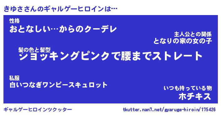 | ヘコむあだ名 | 『きゆもー』『なまこ酢』『きゆ太郎』 |