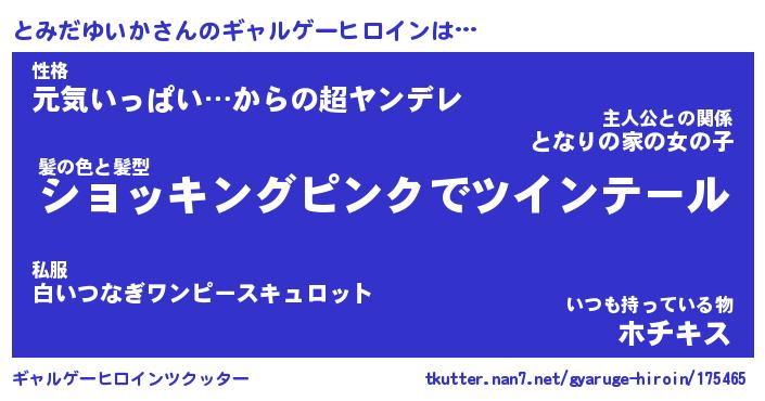 | 男性向けラノベタイトル風あだ名 | 『とみだゆいかの憂鬱』 |
