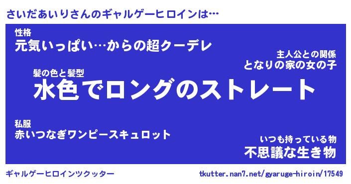 | 伝説のあだ名 | 『伝説の竜騎士さいだあいり』 |