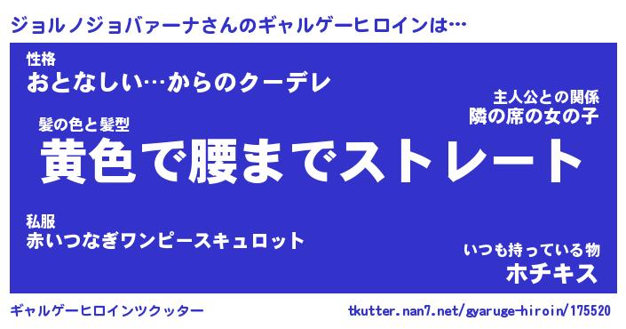 | 女子向けラノベタイトル風あだ名 | 『誰かこのジョルノジョバァーナを説明してください! ~契約から始まるウェディング~』 |