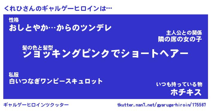 | 男性向けラノベタイトル風あだ名 | 『くれひの憂鬱』 |