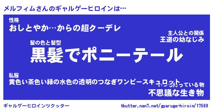 | ファンタジー風あだ名 | 『メルフェル』『エターナルメルフィムー』 |