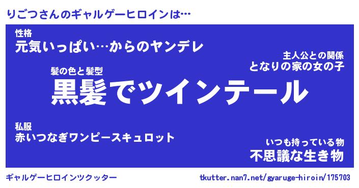 | 男性向けラノベタイトル風あだ名 | 『りごつの憂鬱』 |
