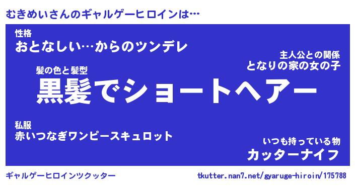 | 男性向けラノベタイトル風あだ名 | 『むきめいの憂鬱』 |