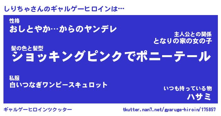 | 男性向けラノベタイトル風あだ名 | 『しりちゃの憂鬱』 |