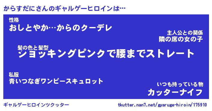 | ポケモン風あだ名 | 『カラチュウ』『カラスダネ』 |